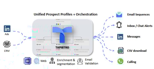 Tapistro now pushes your account and contact segments directly into LinkedIn Matched Audiences. No export. No upload. No manual refresh. Your ICP lists, intent tiers, or deal stage segments activate as LinkedIn campaigns in minutes. When a contact moves in or out of a segment in Tapistro, LinkedIn updates automatically.